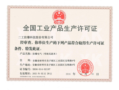 中國·二工防爆科技股份有限公司為全國無區域性企業,座落于中國-安徽-蚌埠,是一家集開發、生產、銷售、安裝、服務為一體的專業防爆公司,專業生產廠用防爆電器、防爆燈具、防爆管件、防爆儀器儀表、不銹鋼防爆電器、防爆防腐電器、粉塵防爆電器和防水防塵防腐電器及燈具、防爆風機、防爆空調、移動照明等產品,公司可生產500多個系列20000多種防爆產品,全方位滿足石油、化工、冶金、電力、船舶、醫藥、紡織、釀酒、航天、軍工、煤炭、消防等各個領域的使用需求。公司產品暢銷國內30多個省市和20多個國家,深受廣大用戶青睞,是國內外許多著名企業的入網供應商和甲級長期合作伙伴....
